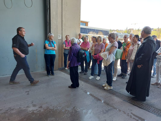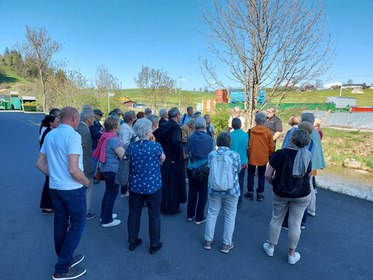 Die KAB, die ihre Wurzeln in der Arbeiterbewegung hat, lud am Tag der Arbeit zur Führung und anschliessendem Gottesdienst in die Klosterwerkstätten ein. Lorenz Fuchs, der technische Zeichner des Klosters, führte die Gruppe zum Holzhof und danach durch die verschiedenen handwerklichen Betriebe, die hauptsächlich für den Unterhalt des Klosters zuständig sind. Die Malerei, Maurerei, Schmiede, Schreinerei, Steinhauerei, Elektro -und Sanitärwerkstatt beschäftigen zusammen rund 30 Mitarbeiter. Die historischen Gebäude sind aufwendig im Unterhalt und die Handwerker haben oftmals besondere Herausforderungen zu bewältigen. Dies mache die Arbeit aber auch spannend, meinte Lorenz Fuchs. Unter den Mitarbeitern habe es einige Tüftler und künstlerisch Begabte. Als Beispiel zeigte er eine aufwendige und sehr gefällige Schmiedearbeit. In der Steinhauerei wurde demonstriert, wie eine marode Skulptur rekonstruiert wird. Das Kloster hat eine eigene Wasserversorgung. 17 Quellen sorgen für eine Spitzenleistung von 370 Litern pro Minute. Die Reparaturen des teilweise alten Leitungssystems seien sehr zeit- und arbeitsintensiv, so Fuchs. Es gibt viel zu tun in der weitläufigen Klosteranlage.