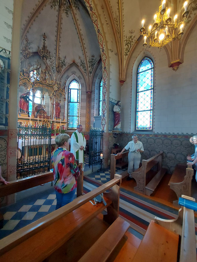 Es ist jedes Mal wieder ein besonderes Erlebnis, wenn sich die Türe der sonst verschlossenen Gangulfkapelle öffnet. Am Donnerstag, 14. Juni, war es wieder soweit. Sakristanin Lisbeth Kälin hatte im Vorfeld alles vorbereitet und die Kapelle mit frischen Blumen geschmückt, so dass die KAB mit ihrem Präses P. Basil die Gläubigen zur Heiligen Messe empfangen konnte.